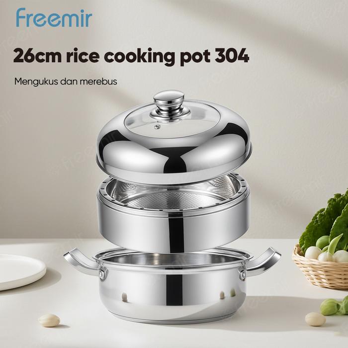 [Sale] New Launch Freemir Rice Cooking Pot Panci Kukus Nasi 26cm Stainless Steel 304 2 Tingkat