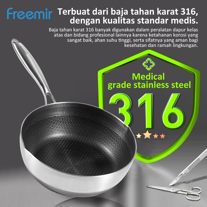 [freemir] Wajan Honeycomb 24 Cm Stainless Steel 316 Medical Grade Anti Lengket Anti Baret