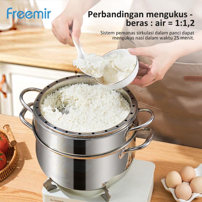 [Crehom] freemir Panci Kukus 2 Susun Masak Nasi 20 Menit Stainless Steel Serbaguna Lebih Tebal
