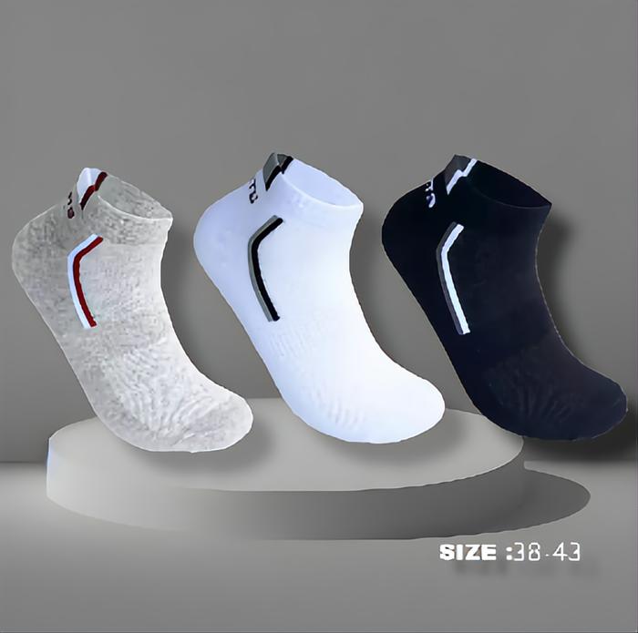 3 PASANG KAOS KAKI OLAHRAGA PENDEK MATAKAKI MOTIF GARIS KAUS KAKI SPORT PRIA WANITA DEWASA - 3 PASANG