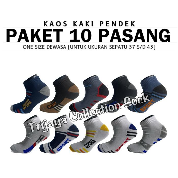 Paket 10 Pasang Kaos Kaki Pendek Sport Pria Wanita Dewasa / Kaos Kaki Semata Kaki Olahraga Unisex - Mix Warna 10 Pasang