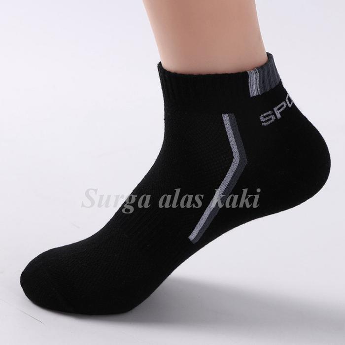Paket 12 Pasang Kaos kaki olahraga sematakaki pria wanita motif bergaris lebih tebal dan anti bau - Hitam