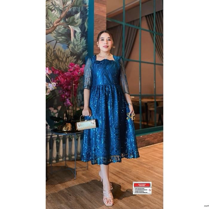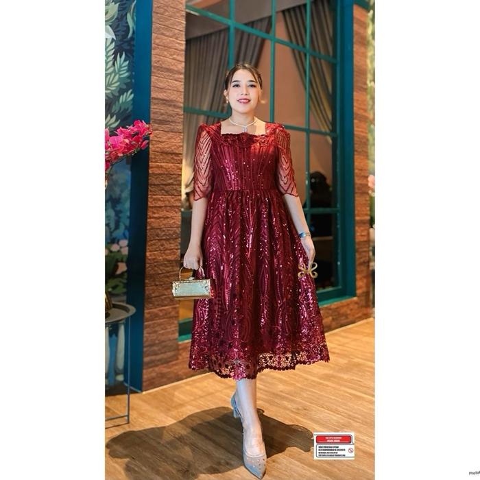 AURORA - Dress pesta / dress kondangan / Bahan tile premium / By AMC - Maroon, S