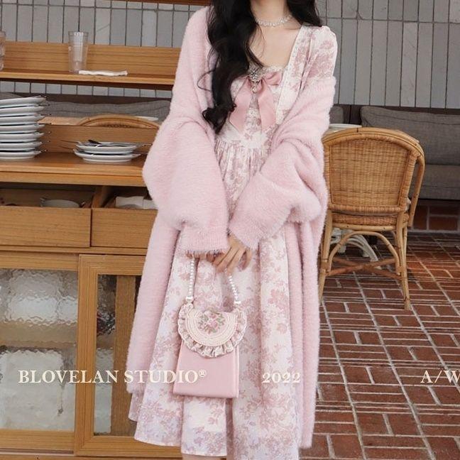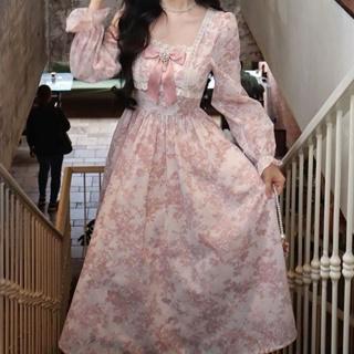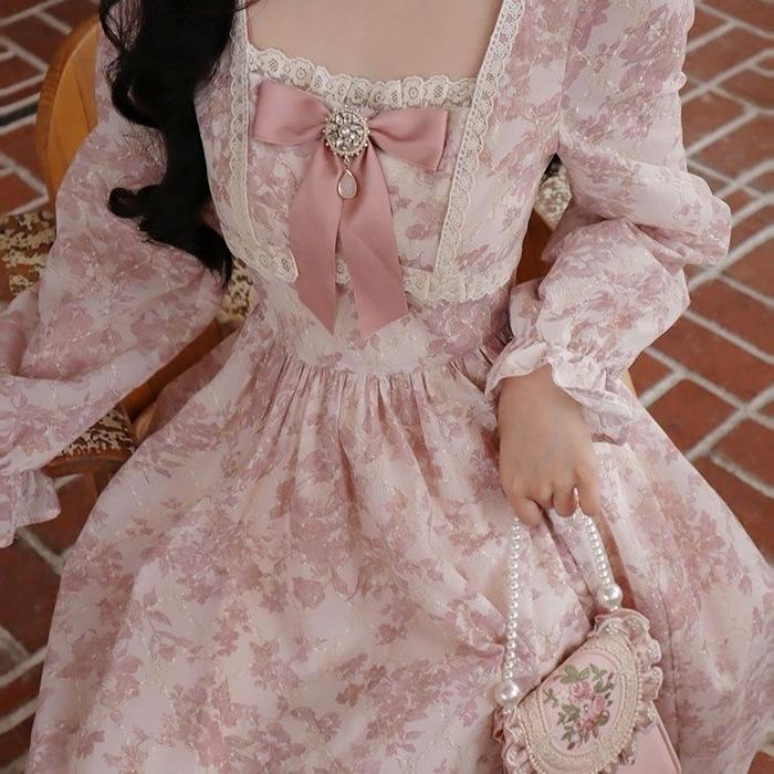 25OCLOCK - Floral Dress Bronzing Motif Manis / Dress Autumn Pink Ribbon Pink - Merah Jambu, S