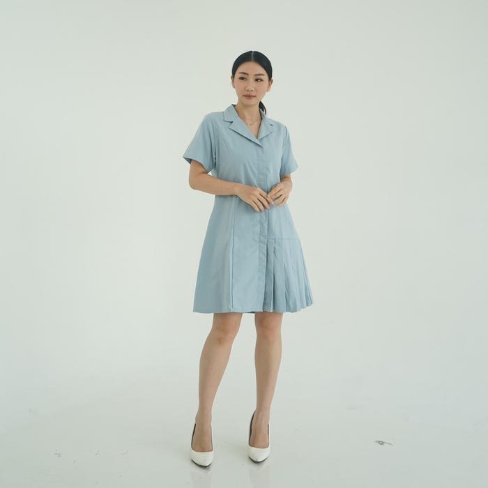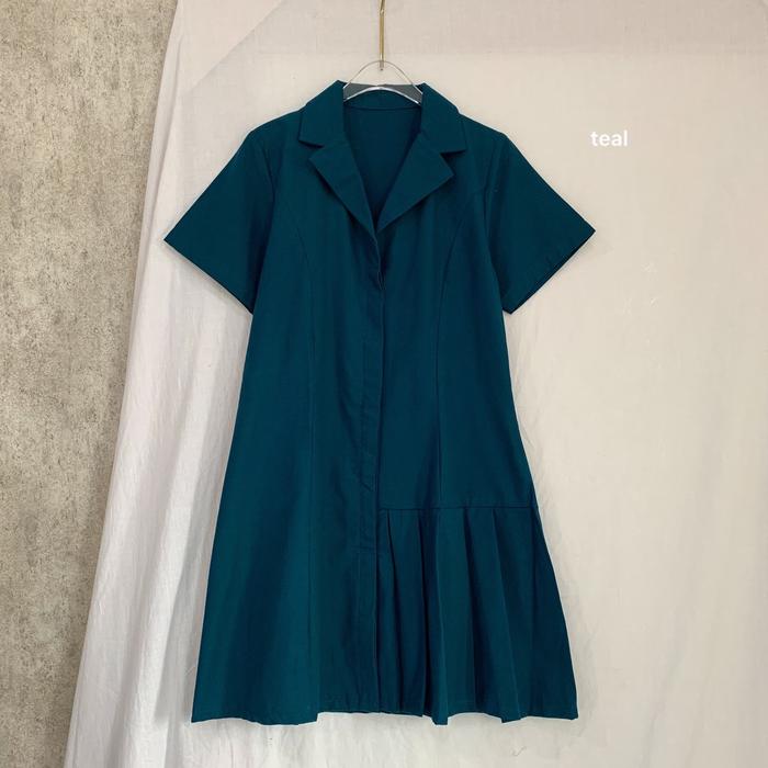 (Posy) Gaun Wanita Mini Rosie Dress Bahan Katun Oxford Casual Simple Pendek - Teal, S-M