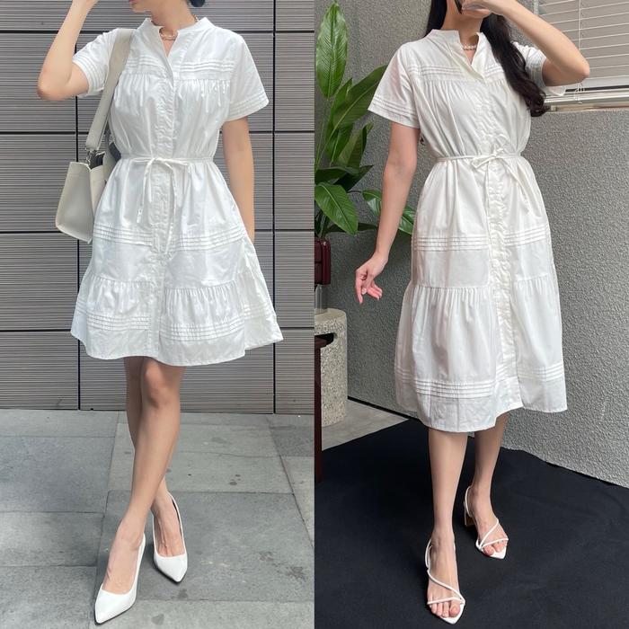 CAROCARA | Ava Dress Wanita Korean Dress Simple Office Look Casual Formal midi - Ava White, MIDI