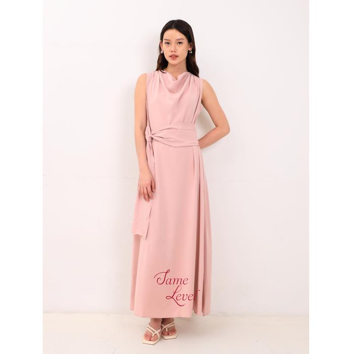 SAMELEVEL Rebecca Dress Silk / Dress Satin / Dress Pesta / Dress Wanita / Dress Korea - Pink, S
