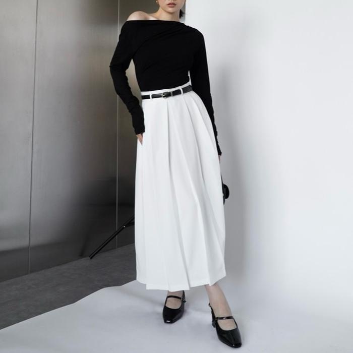 Mecloth - Rok Wanita Putih Panjang Long Skirt Rok Kerja Kantor Terbaru Kekinian Midi Skirt - White Midi, S
