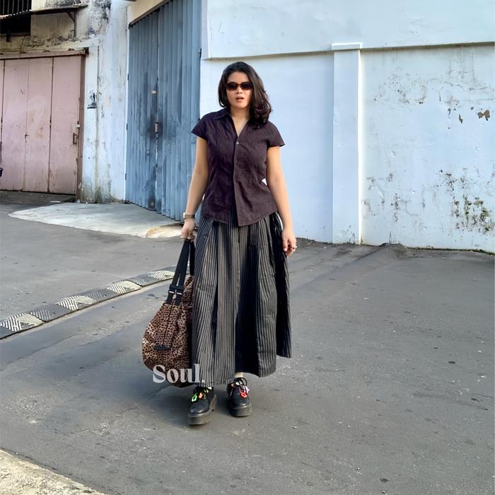 Rok Wanita Soul.id Kinka Korean Style stripe semi woll - HITAM STRIPE, ALLSIZE