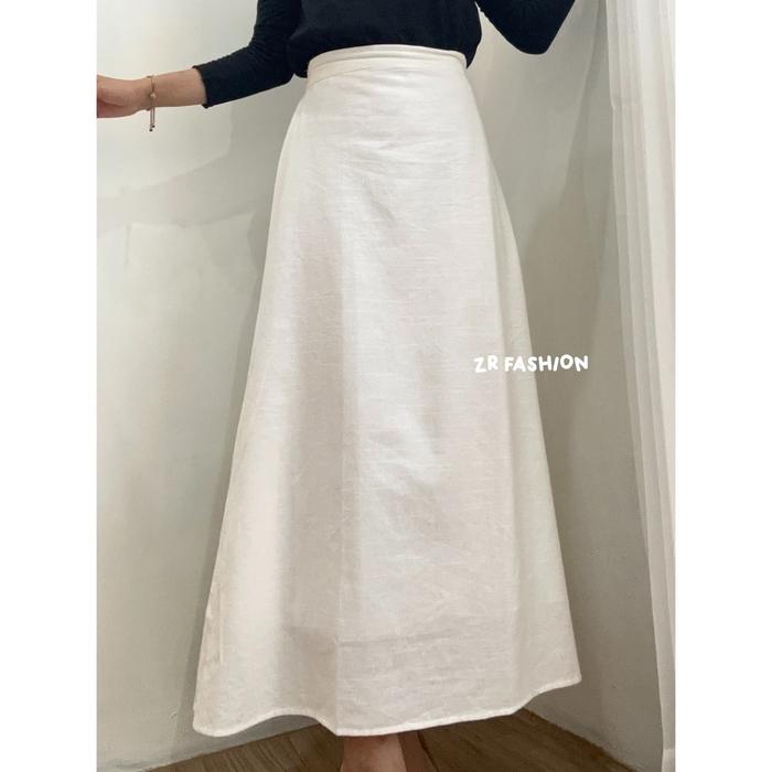ZR fashion - Basic Linen Skirt / Rok Polos Linen / Rok A Line Wanita Ritsleting Loose-fitting - Ivory, M