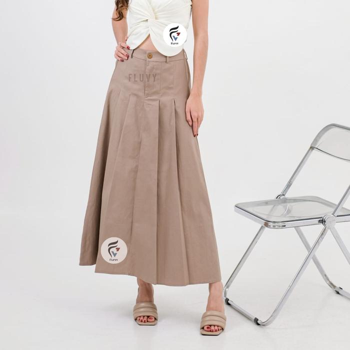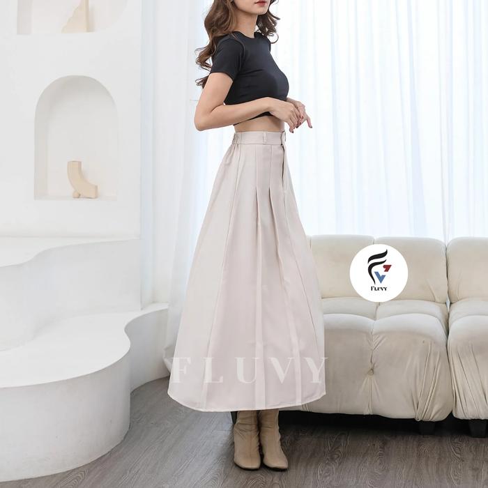 FLUVY - MOLINA Skirt - Rok Rempel Wanita Panjang - Rok Kerja Wanita - Kain SemiWool Anti Kusut - CREAM, BIG SIZE
