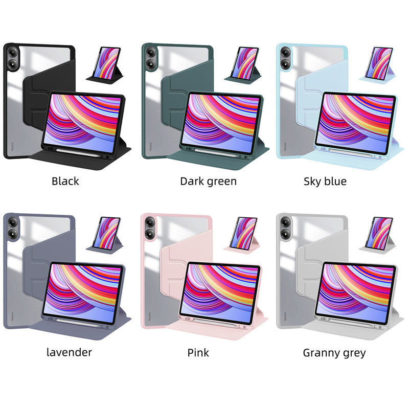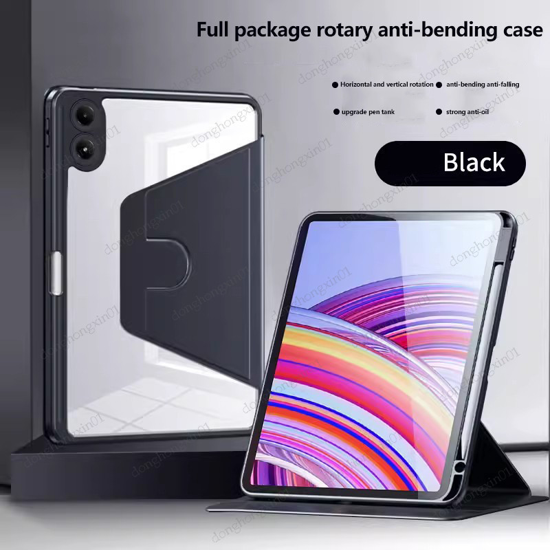 Case Xiaomi Poco Pad M1 /Redmi Pad 2 Pro 12.1 Inch 360 Rotate Flip Case Acrylic Crystal Clear Protective Tablet Autolock Foldable Case Holder Case with Pencil Holder