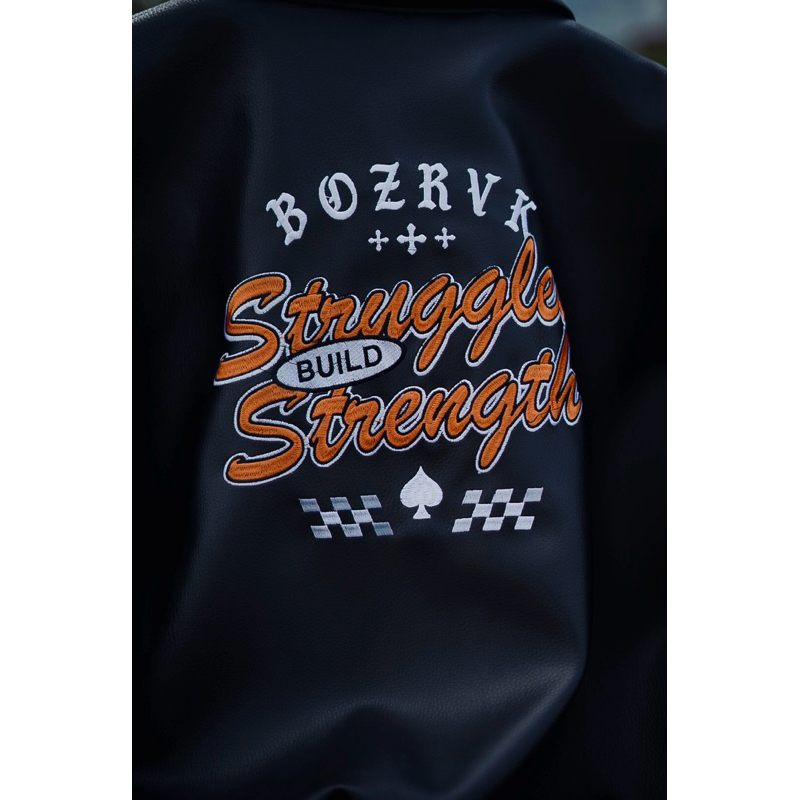 BOZRVK Jaket Varsity Unisex Hitam Leather Full Bordir