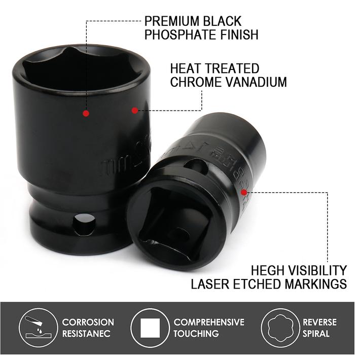 JLD MATA SHOCK PENDEK 12 DRIVE SHALLOW IMPACT SOCKET 8-24MM 6-INT ECERAN SATUAN KUNCI SOK UNTUK BERBAGAI FASTENER AUTOMOTIVE MAINTENANCE REPAIRS DIY - M8