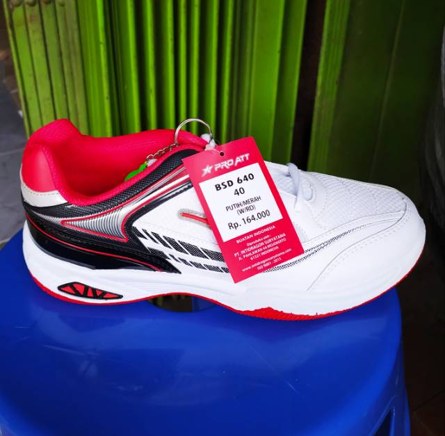 Pro Att Bsd Sepatu Olahraga Badminton Volly Cowok Tali Sol Karet Anti Slip Keren Kekinian Putih Merah Size 40 Sd 43