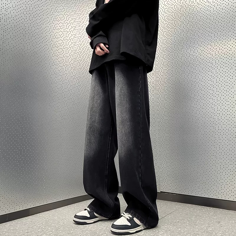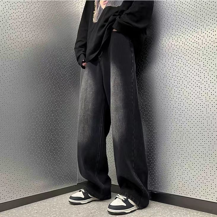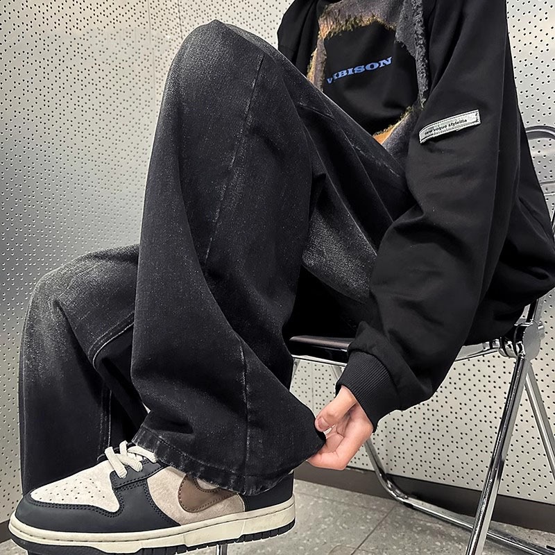 Celana jeans pria panjang hitam abu baggy pants straight celana denim dewasa kulot loose fit jumbo cowok korean style