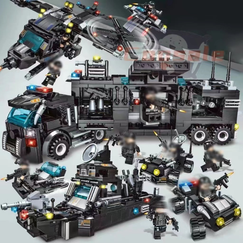 Mainan 1000pcs Brick Blok City Police Vehicle Hawk SWAT Army minicraft city kapal mainan merakit bangunan Kapal Perang B