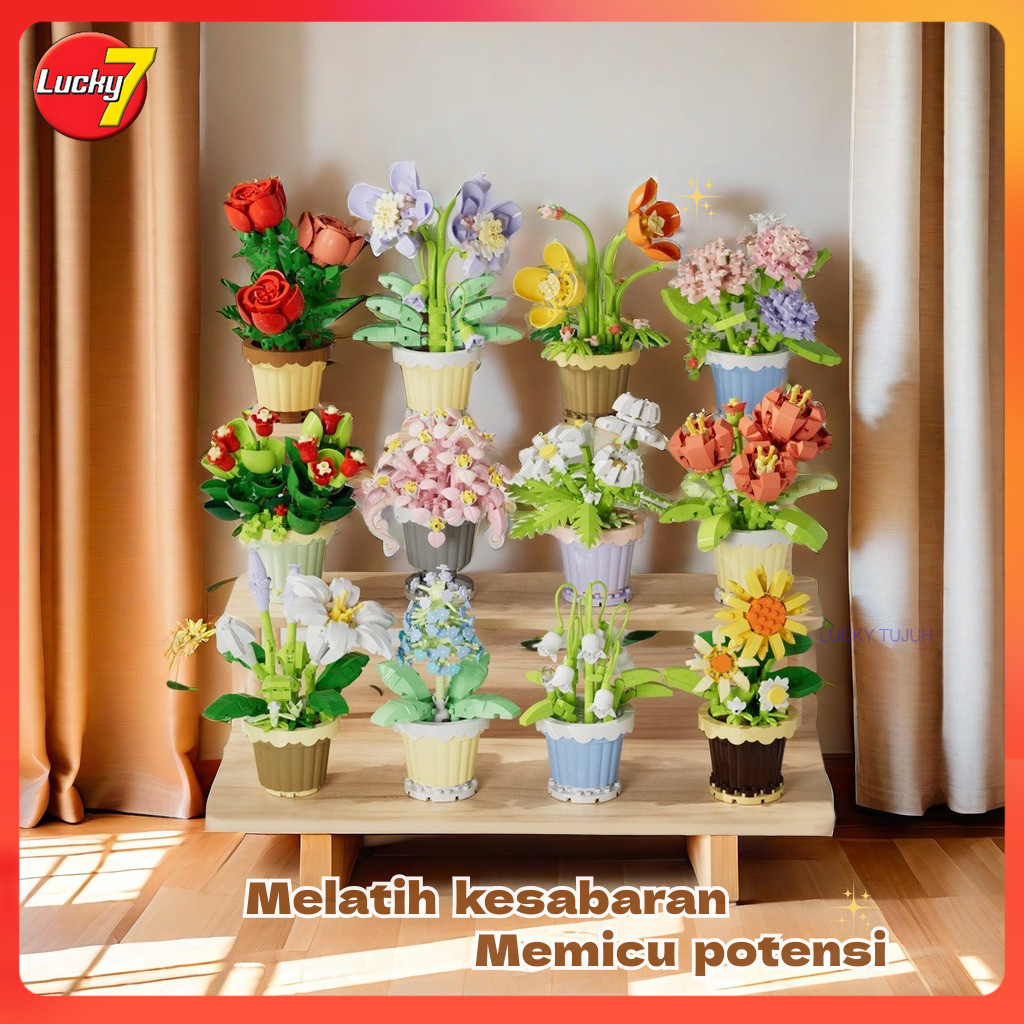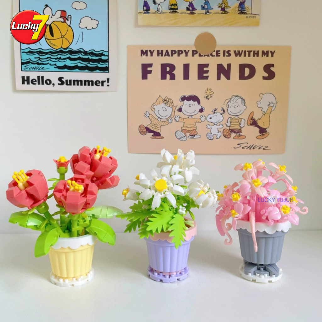 /LuckyTujuh/Blok Bangunan Pot Bunga/Blok Bangunan 3d/Blok Nano Lucu/Pelet Kecil Superior Bunga/Anak Perempuan Hadiah/Bat