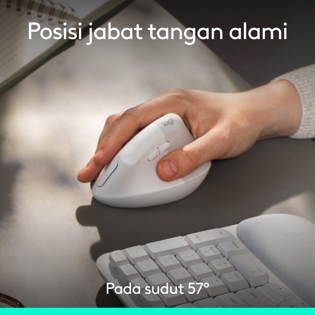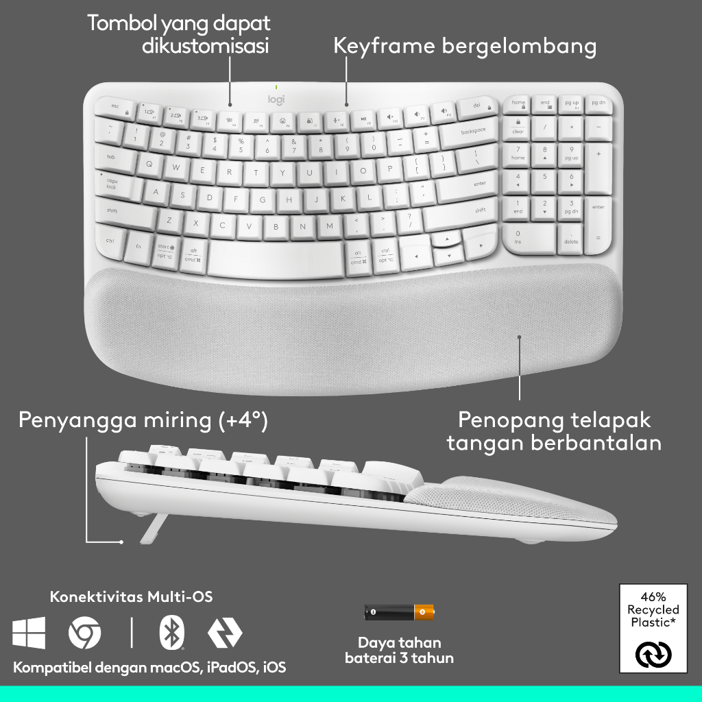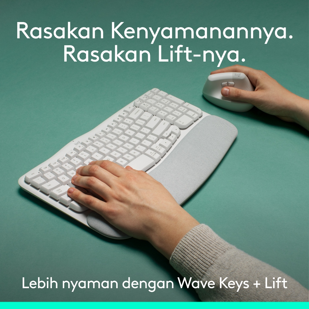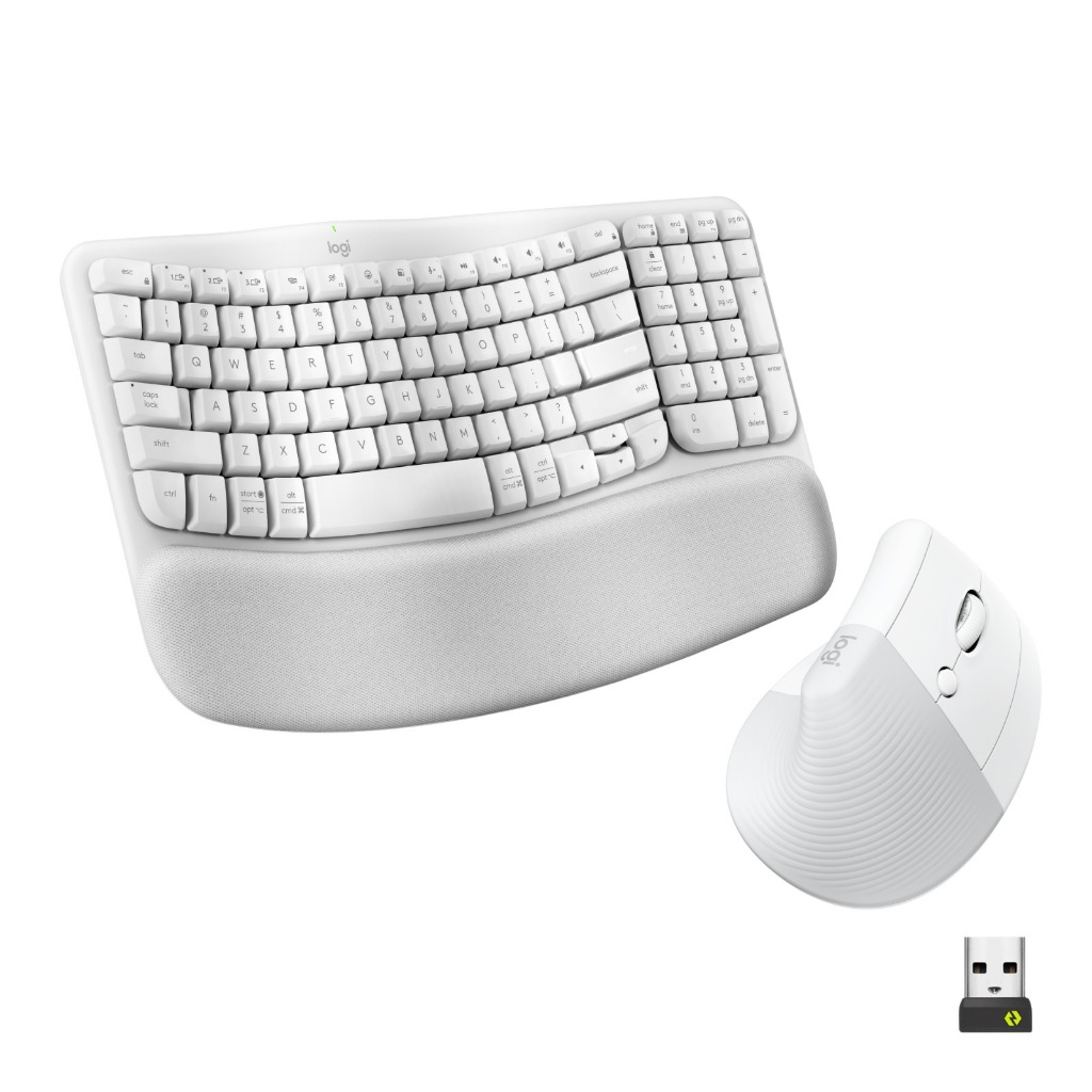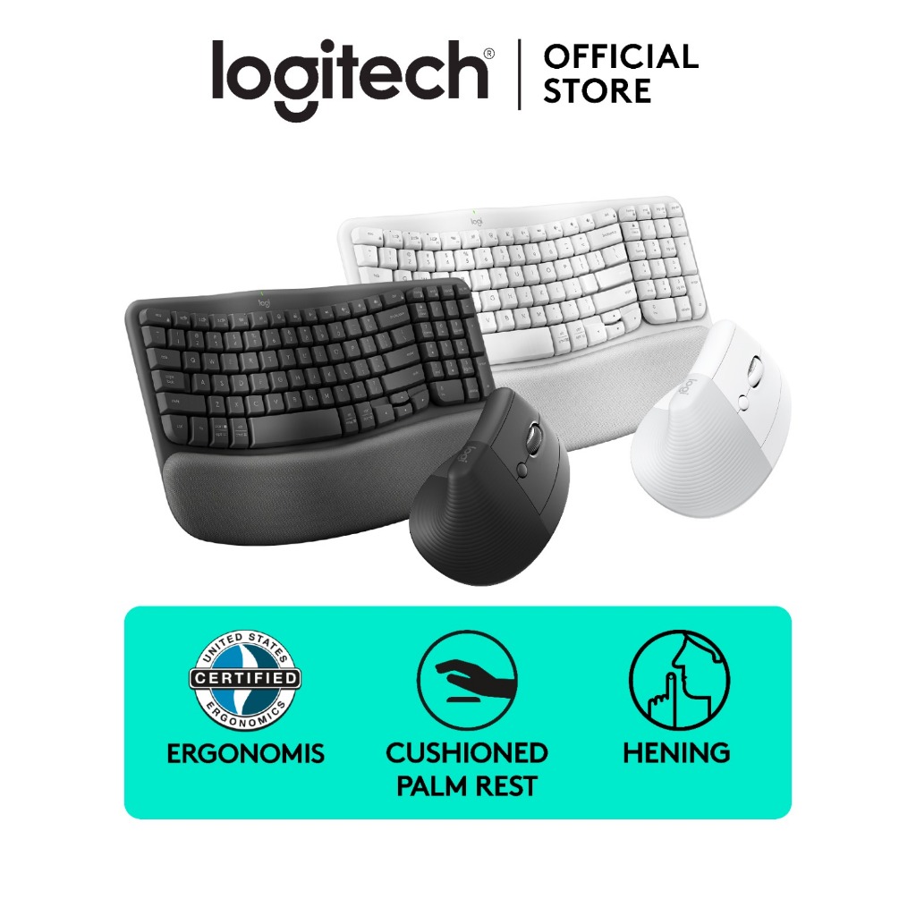 Logitech COMBO Wave Keys & Mouse Vertikal Lift Logitech - Keyboard dan Mouse Nirkabel Ergonomis - dengan Penyangga Telapak Tangan Empuk, Easy-Switch, Bluetooth, untuk Multi-OS, Windows/Mac