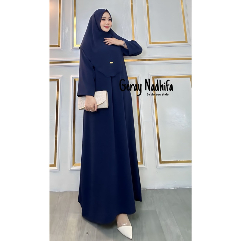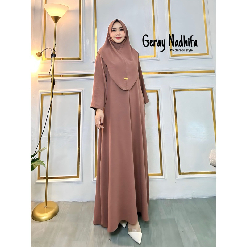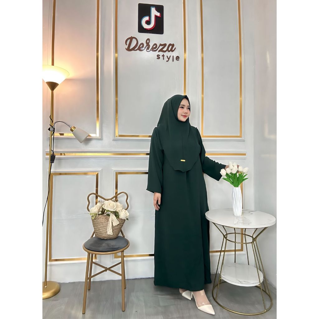 Nur abaya set hijab bergo cringkle airflow by dereza style gamis set hijab Polos Muslim Wanita Dress Dewasa