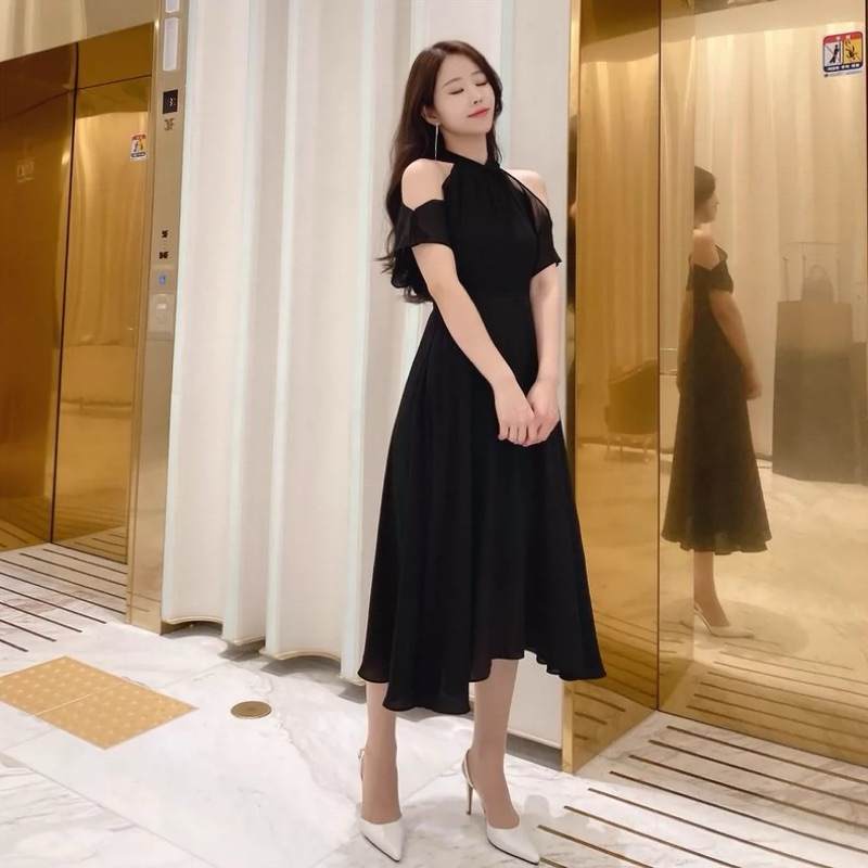 [ADA SIZE JUMBO] D1644 PROSPERO KOREAN STYLE VINTAGE MIDI DRESS SIMPLE POLOS PESTA KONDANGAN HALTER NECK