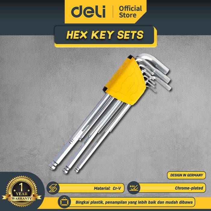 DELI SET KUNCI L PANJANG 9 PCS UKURAN 1.5 - 10 MM UJUNG BULAT DL30XX - LONG