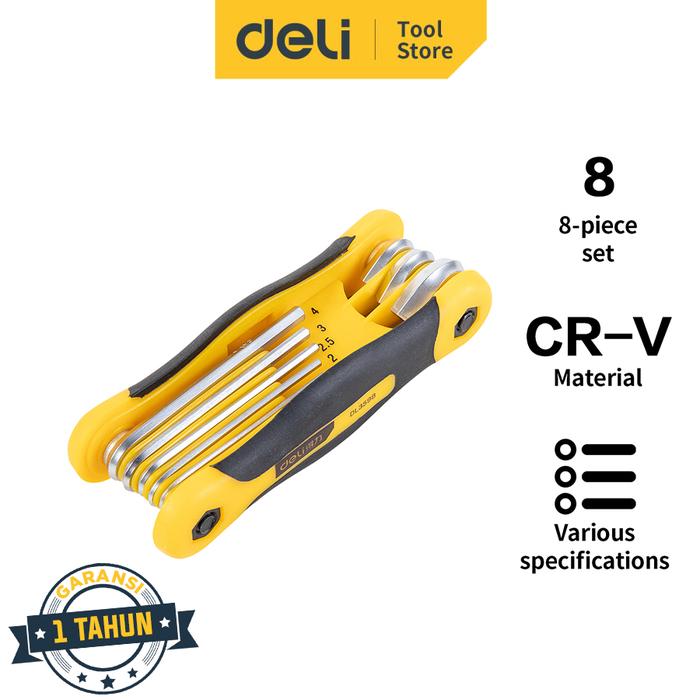 DELI FOLDING HEX KEY SET KUNCI L LIPAT 1.5-8 MM UJUNG RATA DL3598