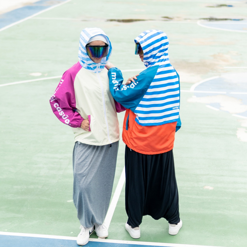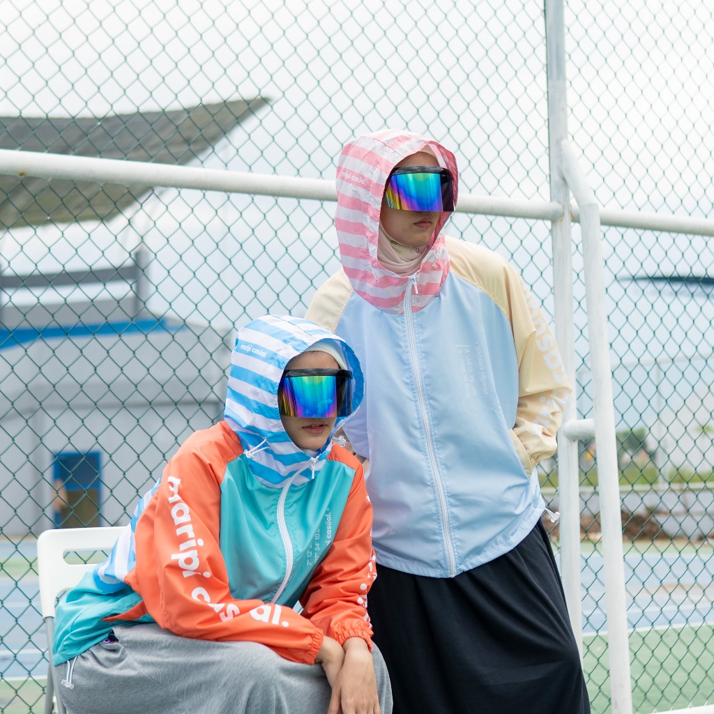 Maripi Jacket Stripes Olahraga Wanita Oversize Running Padel Tenis Parasut Oversized