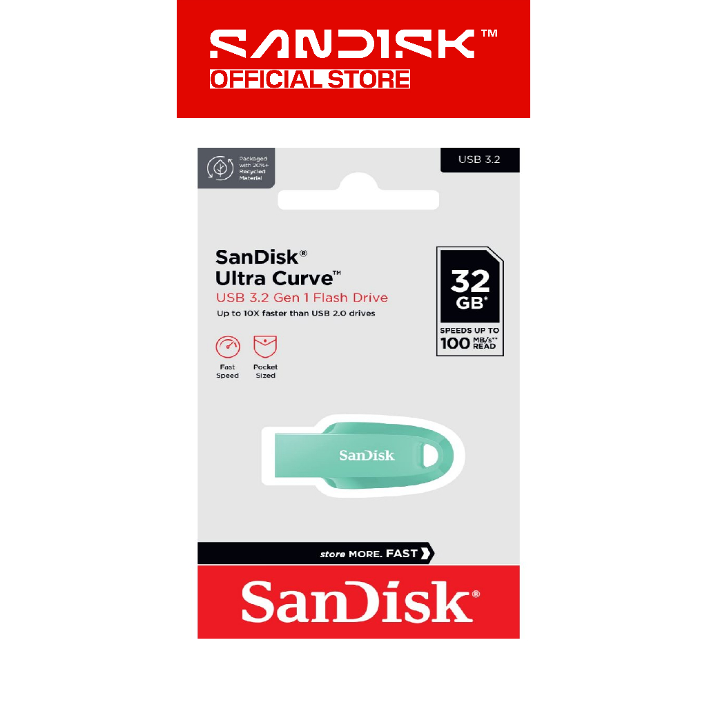 SANDISK CZ550 Ultra Curve 32GB USB 3.2 Mint Green / Hijau Up to 100MB/s - Flashdisk