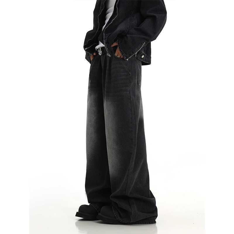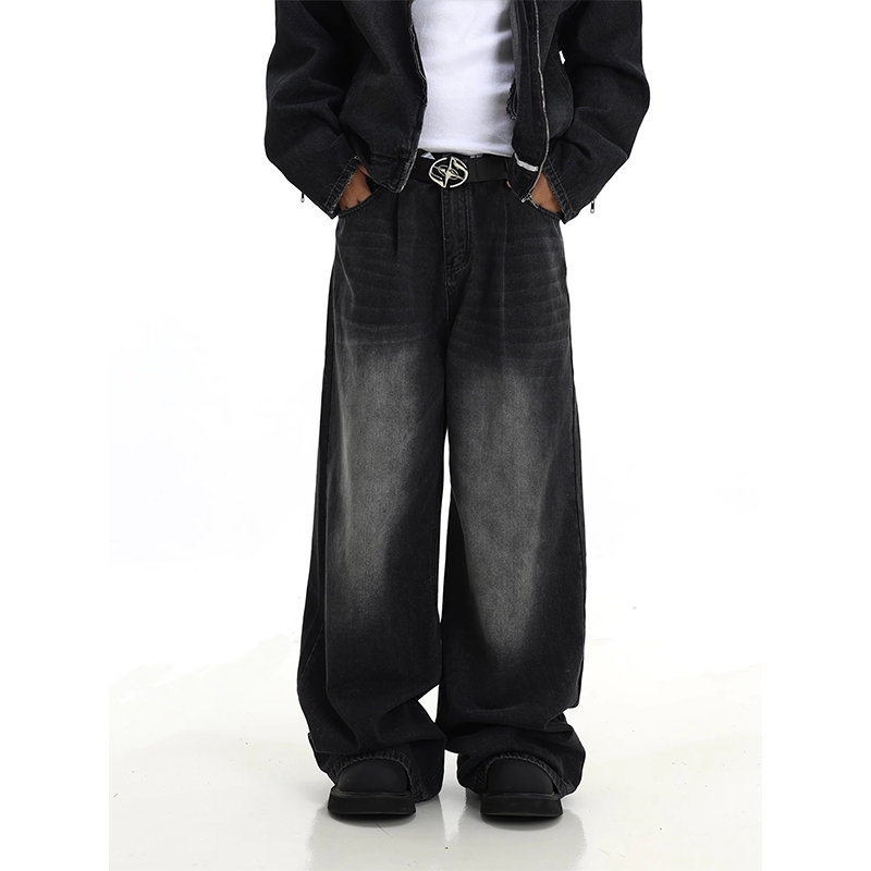 X-gent S-5XL celana gombrong panjang jeans hitam pria jumbo baggy kulot denim pants cowok