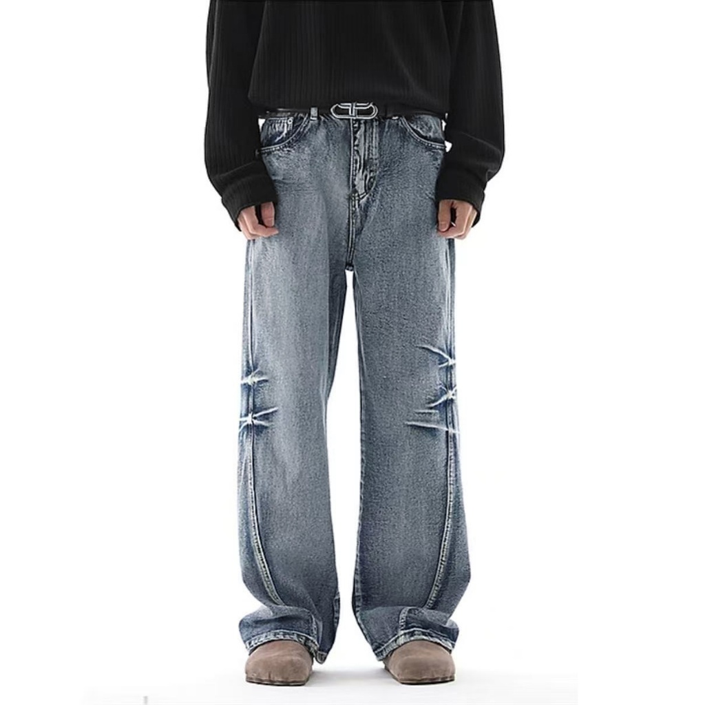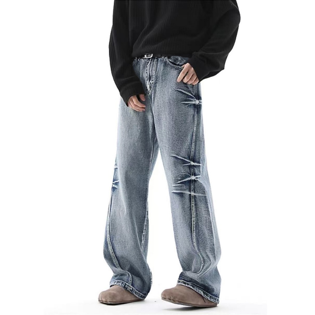 KeyBoy celana jeans pria panjang baggy wide leg kulot celana cowok dewasa casual fashion denim pants korean style