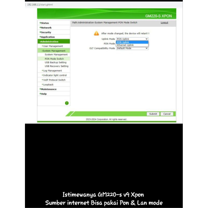GM 220-S XPON GPON EPON ONU support brige remot PLUS ADAPTOR ORI BERGARANSI