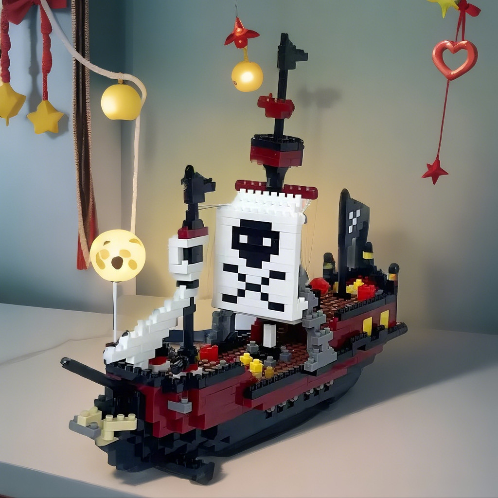 Mini Block Kapal Nelayan Luffy dengan Nano blok Mainan Pintar Anak-Anak Bricks
