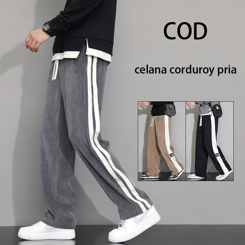 Celana corduroy pria panjang Korean style Bahan menebal baggy pants gombrong pinggang karet dewasa cowok causal premium