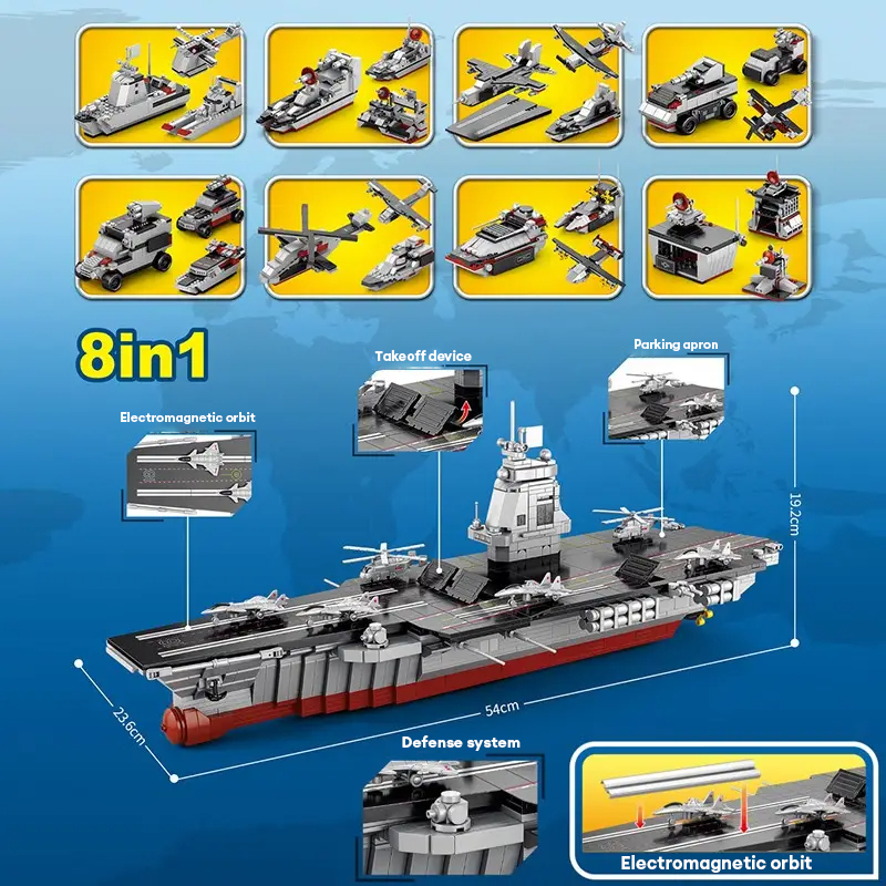 ZHBO Mainan Anak Laki-laki kapal induk Ship Polisi Block 3D Susun Puzzle Edukasi Mainan 8/9/10 tahun