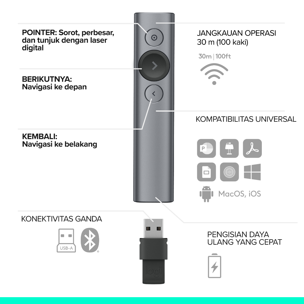 Logitech Spotlight Pointer Presenter Advanced Wireless / Bluetooth - Slate