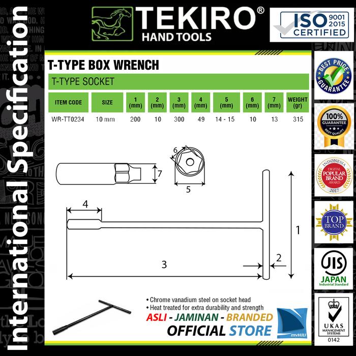 KUNCI SOK T - 10 MM GAGANG BESI BLACK T-TYPE SOCK SOCKET TEKIRO