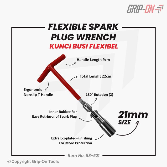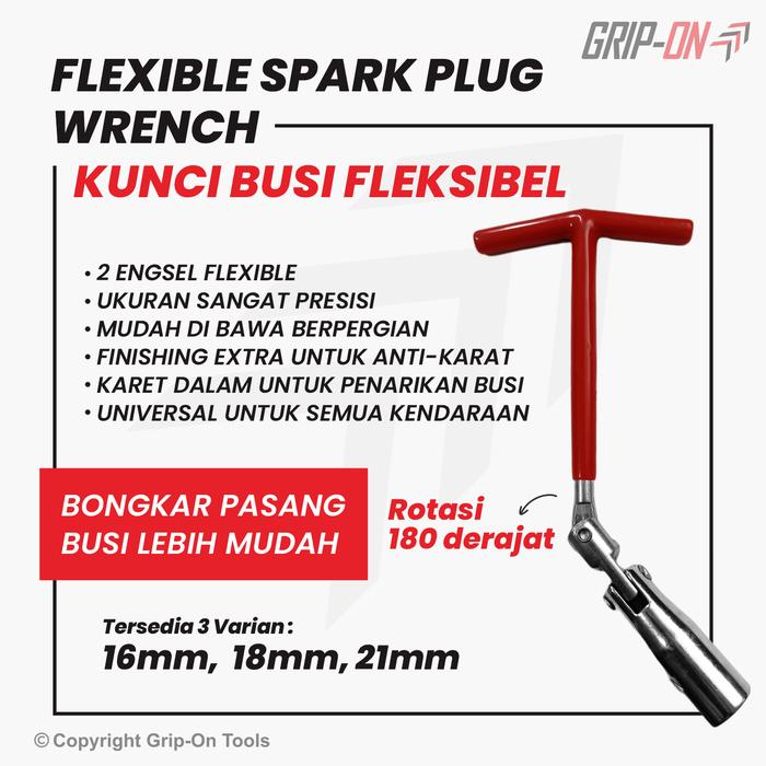 KUNCI BUSI SOK T BUSI FLEXIBLE T-SOCKET SPARK PLUG WRENCH 16 18 21 MM - 18 MM