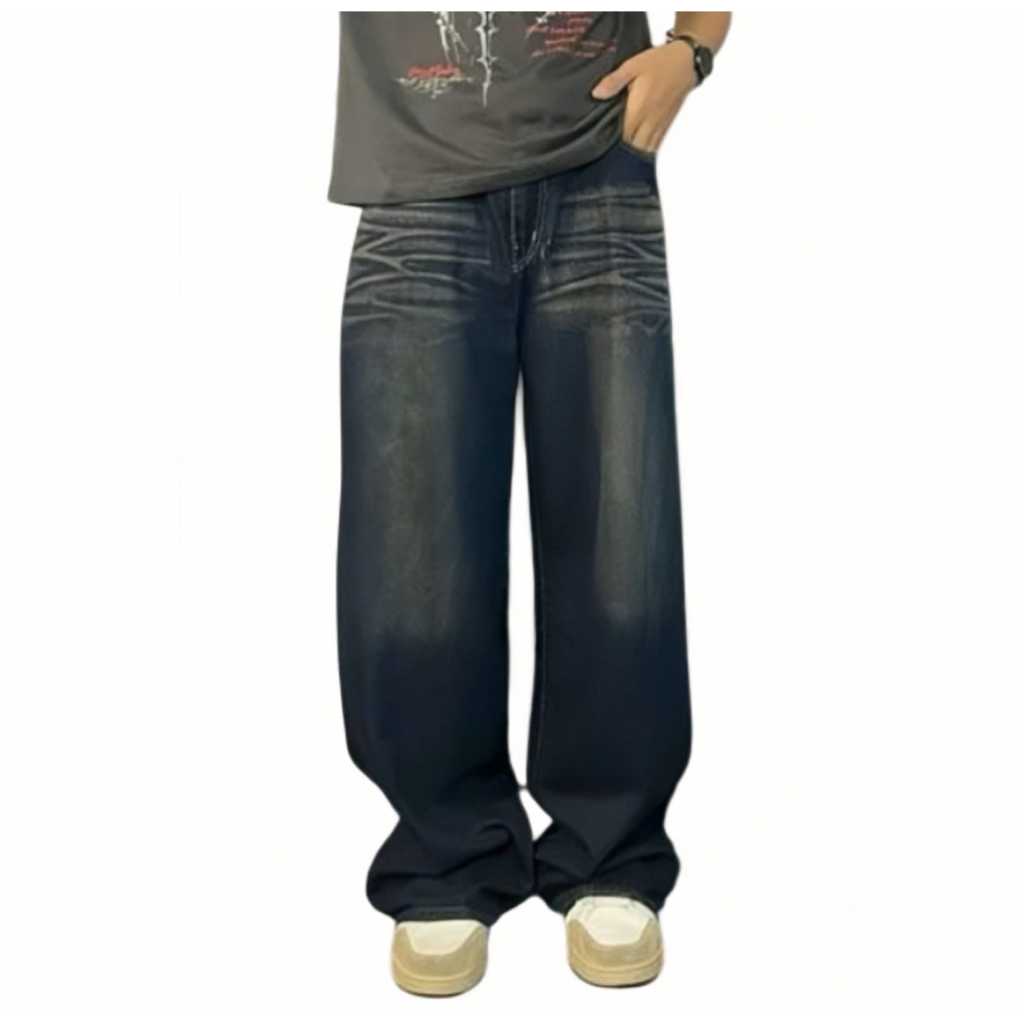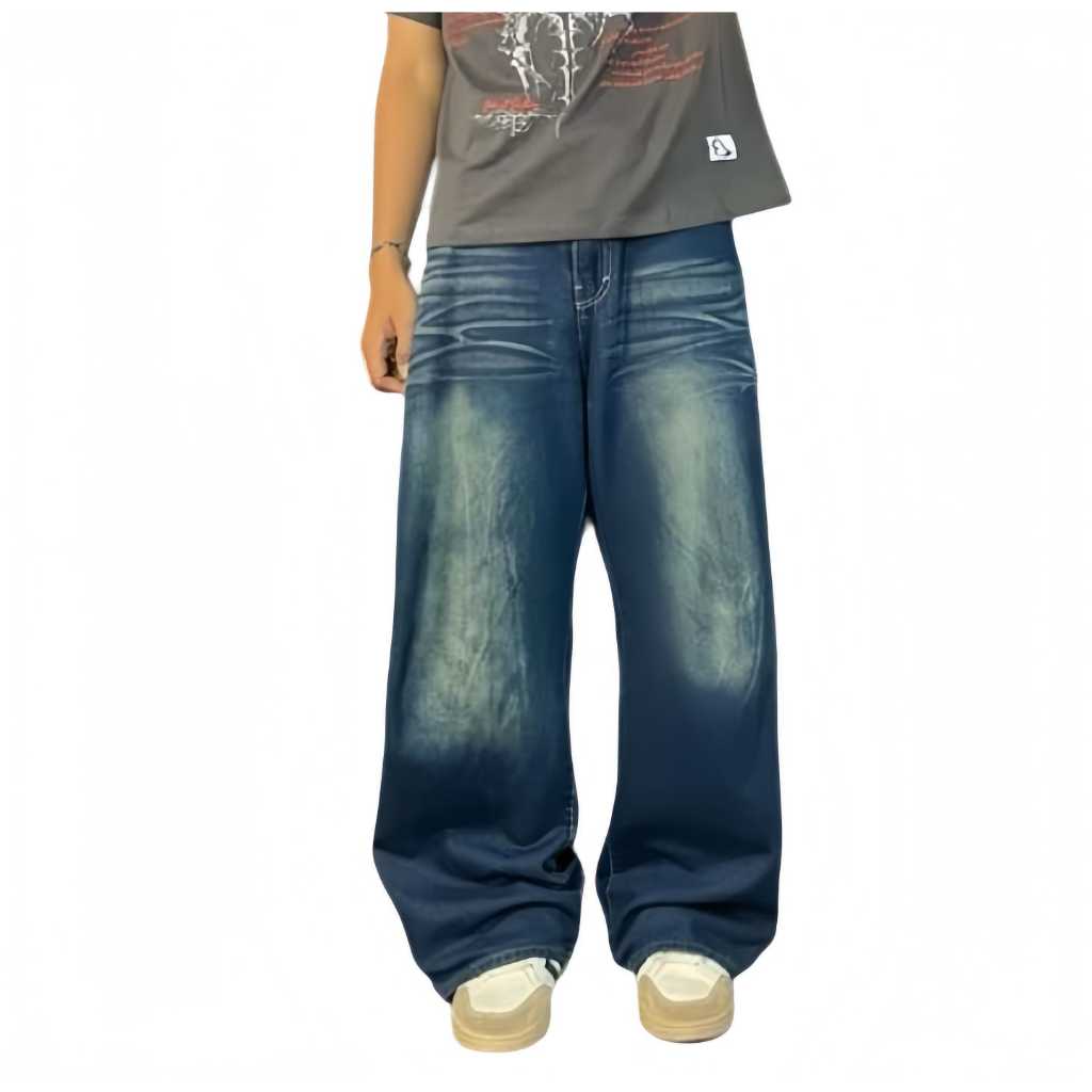 Saila Celana Jeans Pria Baggy Pants Korean Style Oversize Loose Blue Jeans Retro Straight Kulot Boyfriend