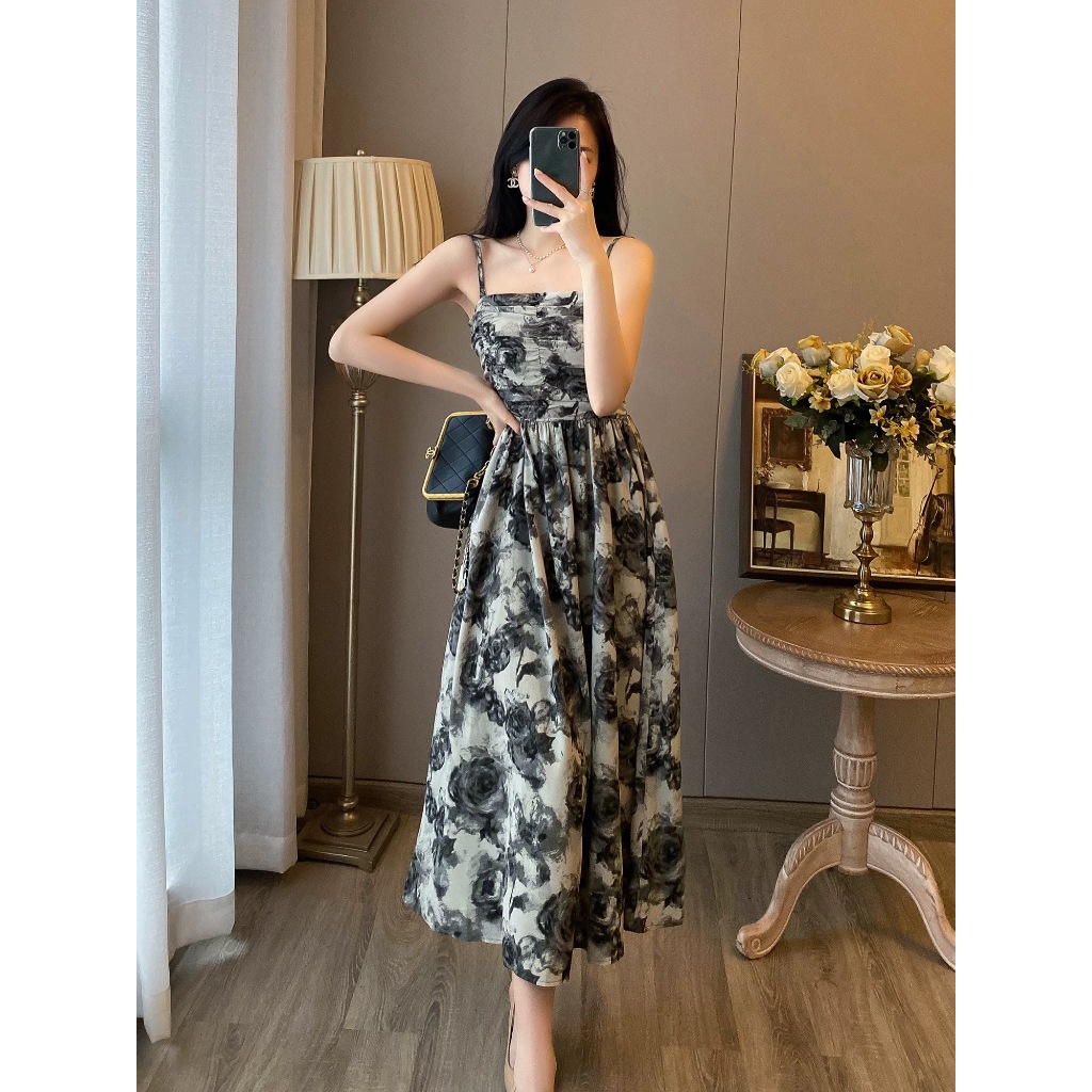 EMITA BLOOM floral midi dress cantik ke pantai panjang Wanita korean style tanpa lengan motif bunga jumbo terbaru 2026 k