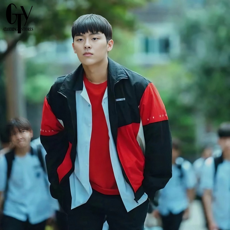 Jaket Parasut Olahraga Pria korea Ahn SuHo Pahlawan Lemah Bordir QT8 Varsity Keren Waterproof Windbreaker uni