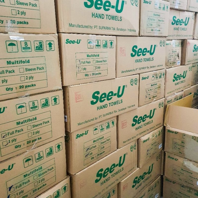TISSUE SEE U HAND TOWEL RED 150 SHEETS 1 KARTON MURAH / SEE U HAND TOWEL