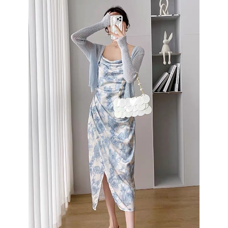 MISS EMITA Midi Dress Hijau Wanita Kekinian Elegant Party Dress Tanpa Lengan Motif Bunga Korean Style Long Dress Cantik
