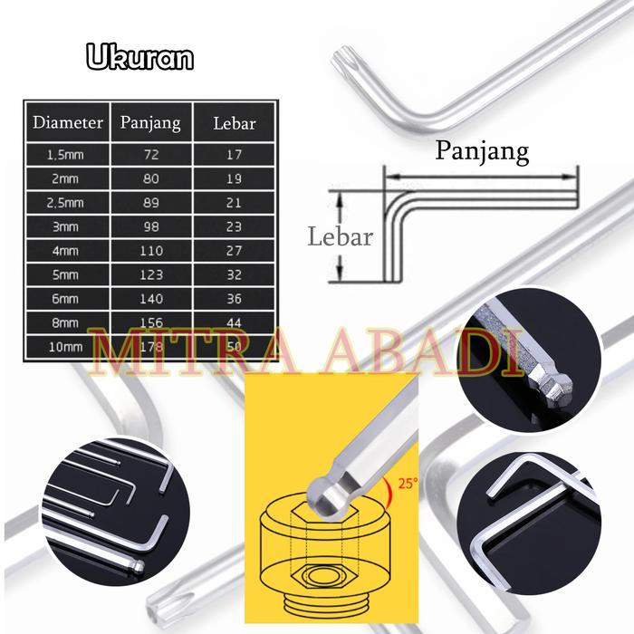 KUNCI L SET HEX KEY WRENCH BALLINT 1 SET = 9 PCS SERBAGUNA - SET HEXAGONAL