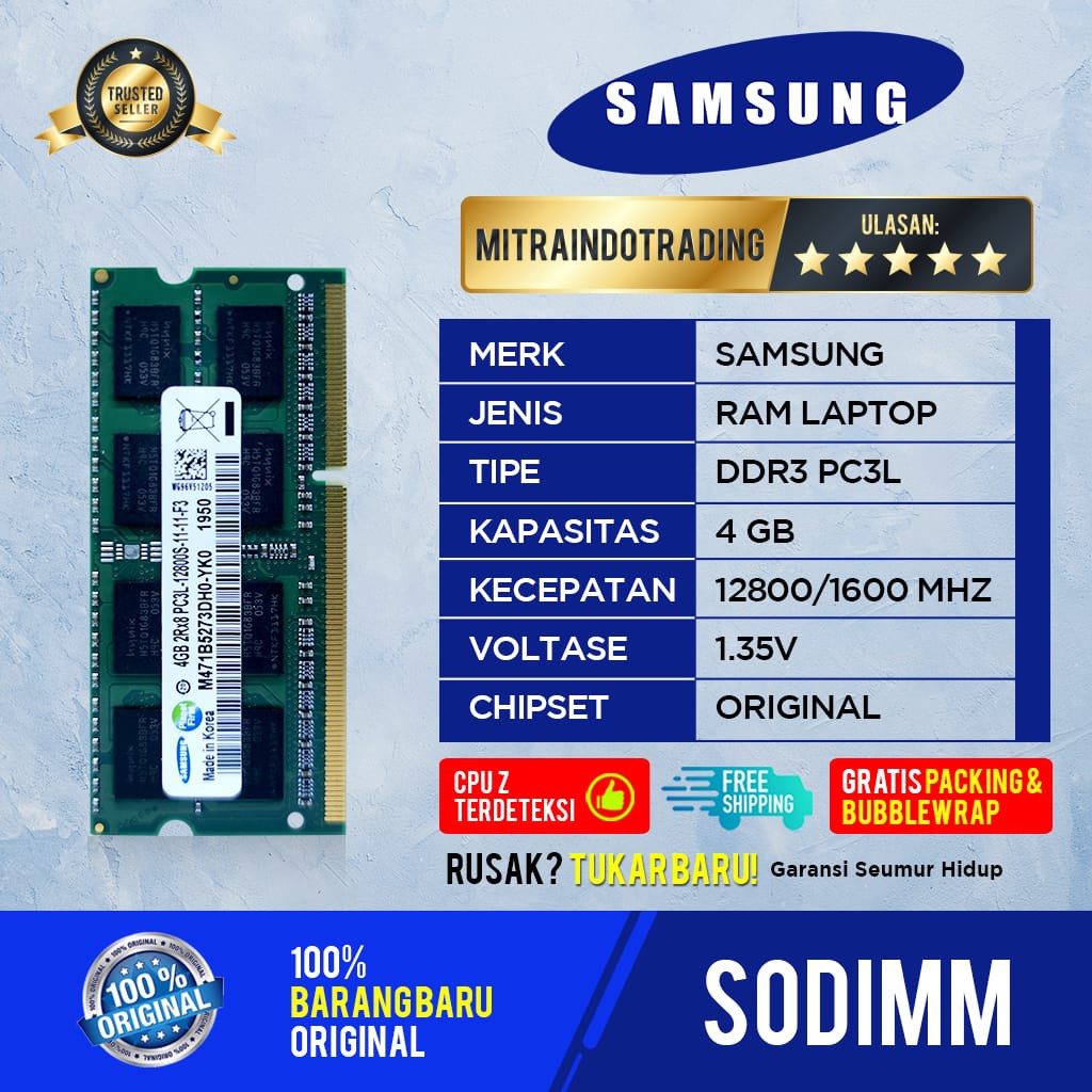 RAM SAMSUNG SODIMM DDR3L 4GB PC12800 BERGARANSI