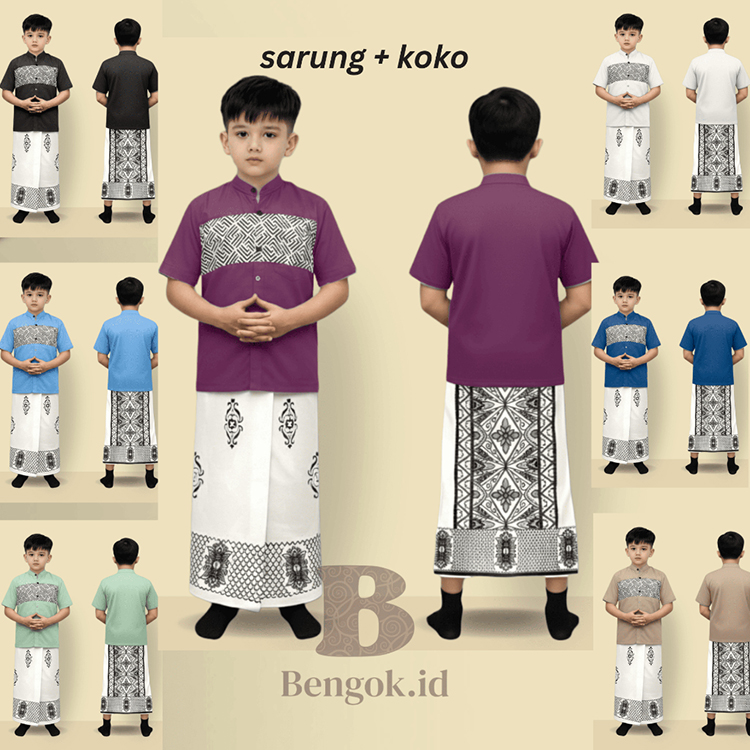 Setelan Koko Anak Dan sarung instan anak | Baju Koko Anak trendy Masa Kini | Baju koko anak dan sarung