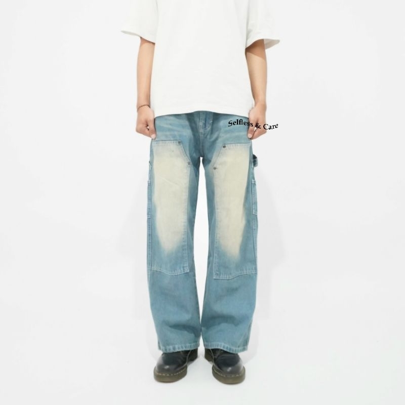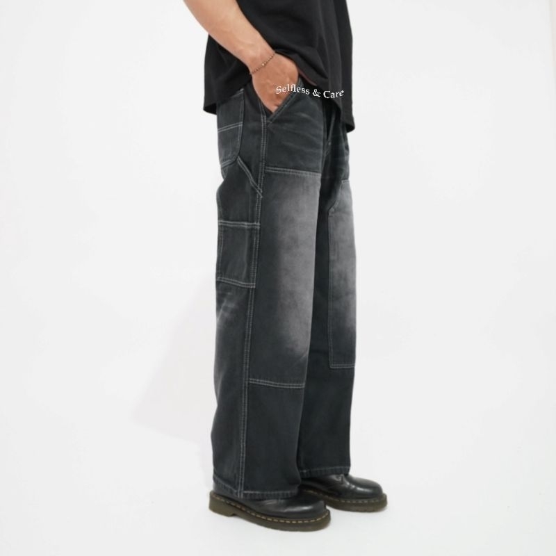 Selfless - Celana Baggy Jeans Wash Long Carpenter Double Knee Pants Loose Fit Denim Wide Leg Pria Panjang Celana Loose Pant Karpenter Baggy Jeans Washed Jins Jean Skena Gombrong Gombrang