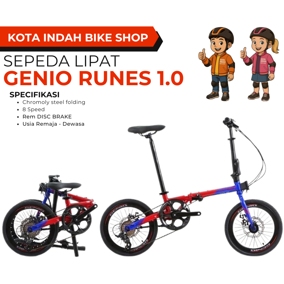 Sepeda Lipat 16 Inch GENIO Runes 1.0 Chromoly Folding 8 Speed