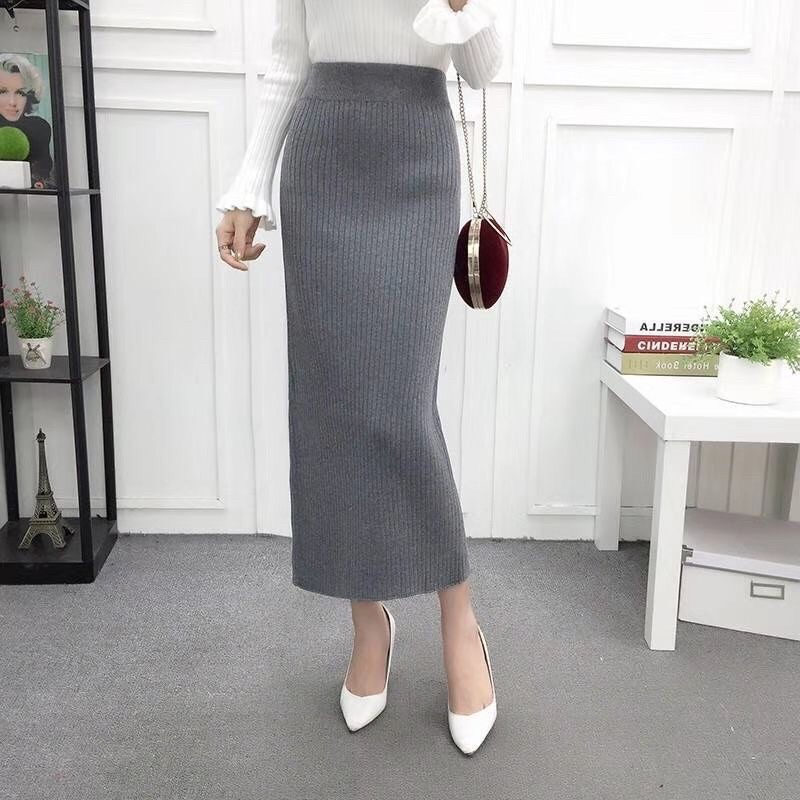 ROK SPAN RAJUT PREMIUM TEBAL KOREAN STYLE ROK PANJANG MUAT SAMPAI JUMBO ALLSIZE MAXXI ROK HITAM RedWinKnitted
