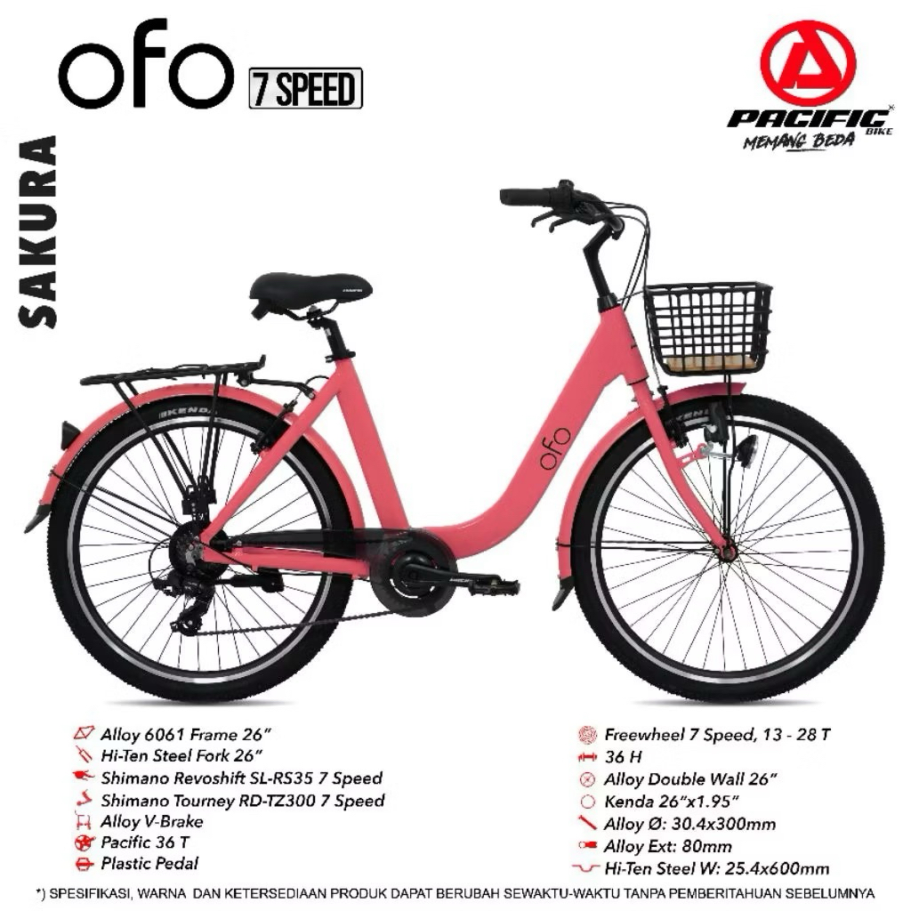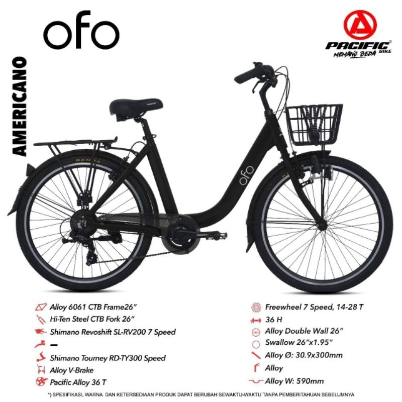 Sepeda CTB 26 Pacific OFO 7 Speed Yellow Banana Free Bonus / Sepeda Keranjang Cewek uk 26 Pacific OFO 7 Speed